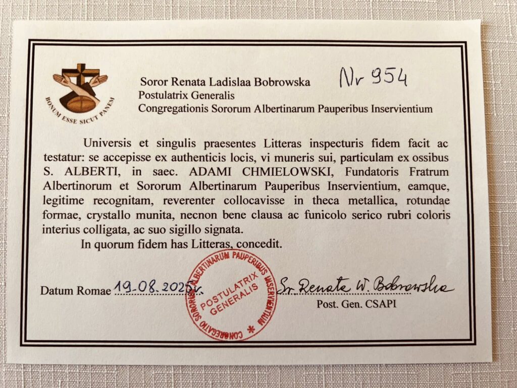 Dziś, 19 sierpnia – w wigilię 180. rocznicy urodzin Świętego Brata Alberta – nasza parafia otrzymała niezwykle cenny dar: relikwie Świętego Brata Alberta – kość patrona naszej wspólnoty!
